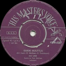| A1: Kai Lind: Ykkönen (Number One) A2: Kai Lind: Kultainen rengas (Golden Band Of Gold) B1: Four Cats: Sabeline B2: Four Cats: Liisa |